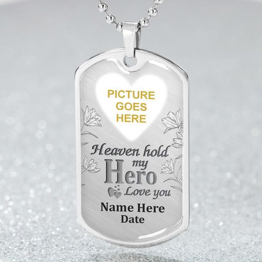 Custom Memorial Military Dog Tag PendantFor Lost Loved Ones Heaven Hold My Hero Military Dog Tag Pendant Sliver M68