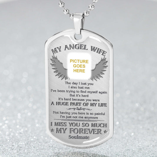 Custom Memorial Military Dog Tag Pendant For Loss Of Wife My Angel Wife Dog Tag Pendant White M90