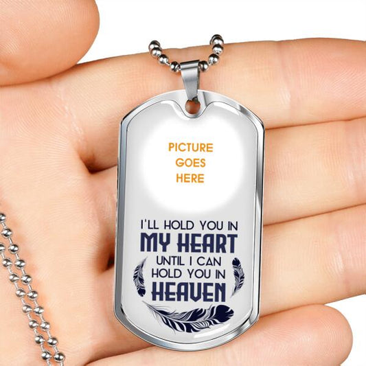 Custom Memorial Military Dog Tag Pendant For Lost Loved Ones I'll Hold You In My Heart Dog Tag Pendant White M81F