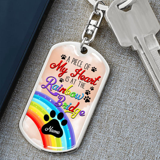 Personalized Memorial Dog Tag Keychain A Piece Of My Heart Is A Rainbow For Loss Of Dog Custom Pet Memorial Gift M592
