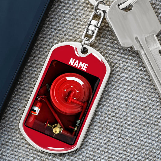 Personalized Firefighter Dog Tag Keychain Firefighter Hose For Dad Brother Family Friends Keychain Custom Firefighter Gift