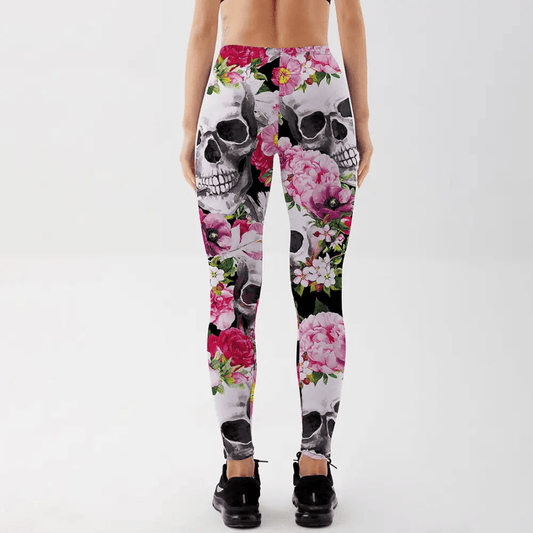 Skull Leggings Skull And All Type Of Flower High Waisted Legging Pink Black For Women