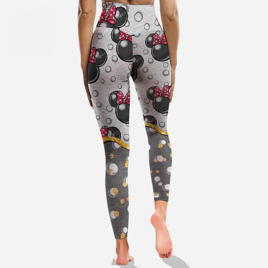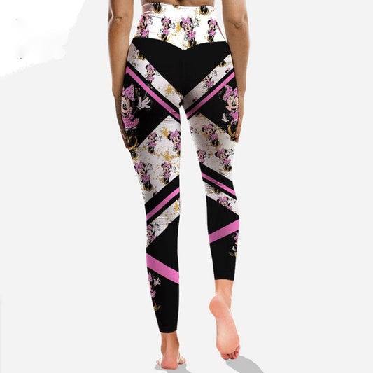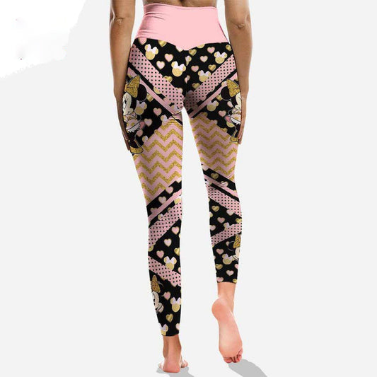 Minnie Leggings DN Minnie Mouse Head Pattern High Waisted Legging Black Pink For Women