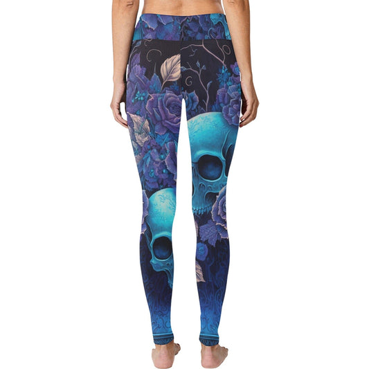 Skull Leggings Skull Rose Floral Pattern High Waisted Legging Blue For Women