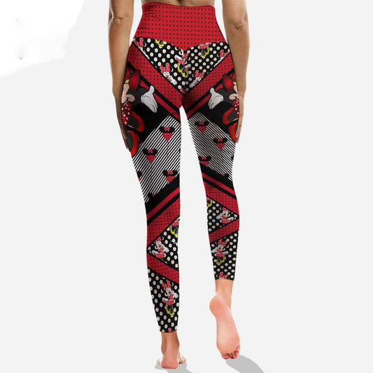 Minnie Leggings Minnie Poses Graphic Balloon Pattern High Waisted Legging Black Red For Women