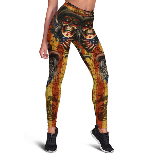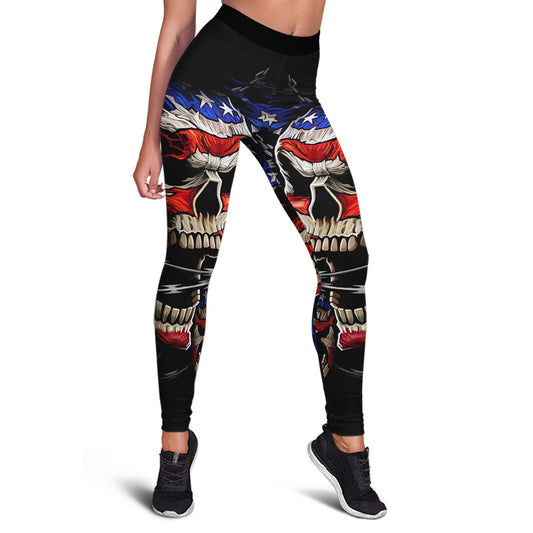 Skull Leggings Skull And America Flag High Waisted Legging Black For Women