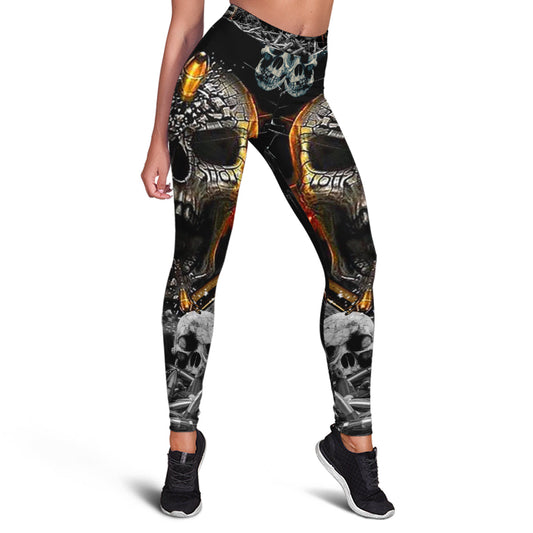 Skull Leggings Skull Broken Glass Bullet High Waisted Legging Black For Women