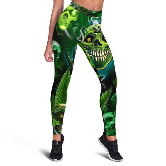 Skull Leggings Skull Smoking High Graphic High Waisted Legging Green For Women