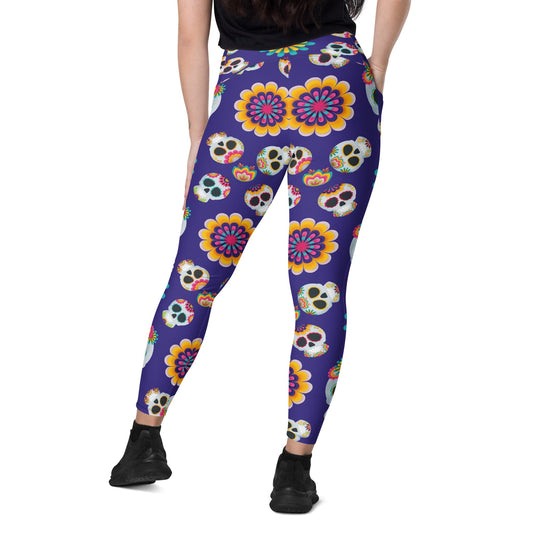 Skull Leggings Sugar Skulls And Flowers Pattern High Waisted Legging Purple For Women