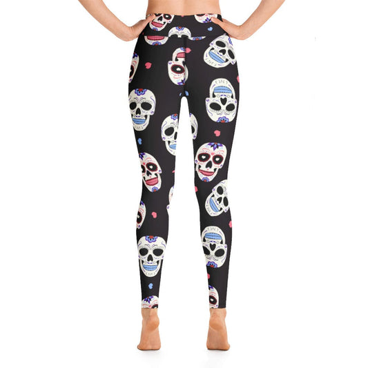 Skull Leggings Mexican Sugar Skulls Pattern High Waisted Legging Black White For Women