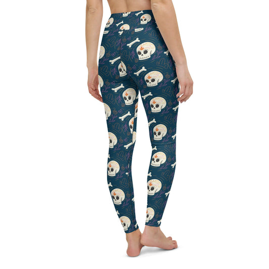 Skull Leggings Flower Skull Hand Bone Pattern High Waisted Legging Blue For Women