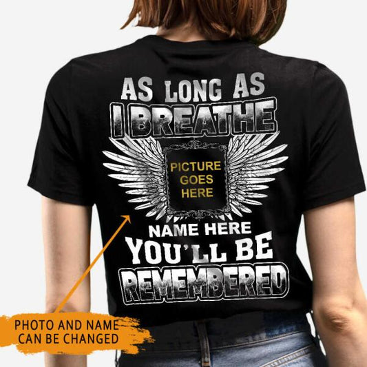Custom Memorial Tshirt With Picture For Lost Loved Ones As Long As I Breathe Guardian Angel Tshirt 6XL Black M60