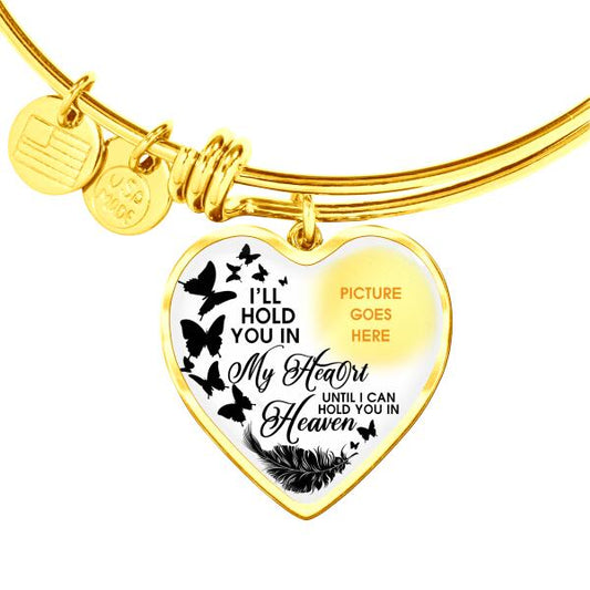 Custom Memorial Heart Bangle For Loss of Mom Dad Grandma Son I'll Hold You In My Heart Heart Bangle White M298
