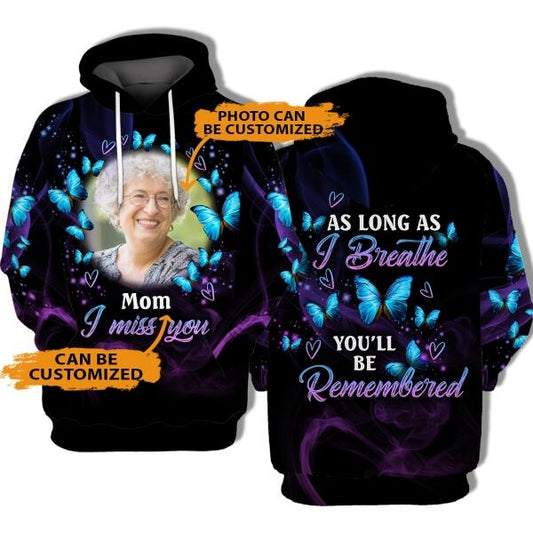 Personalized Memorial Hoodie As Long As I Breathe I Miss You For Mom, Dad, Grandpa, Son, Daughter Custom Memorial Gift Black M446