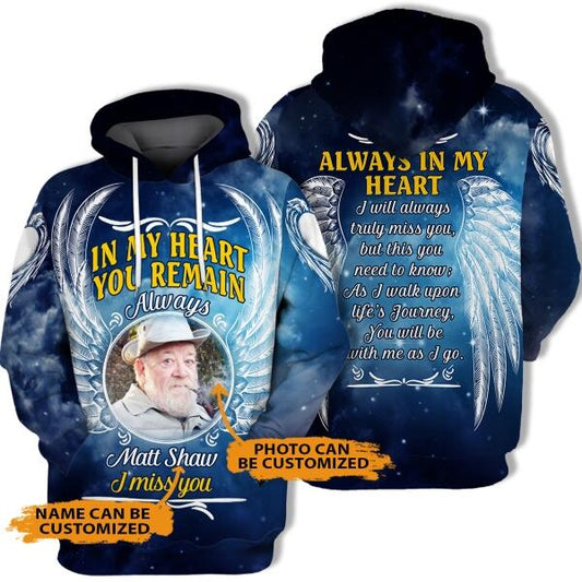 Personalized Memorial Hoodie In My Heart You Remain For Mom, Dad, Grandpa, Son, Daughter Custom Memorial Gift M457