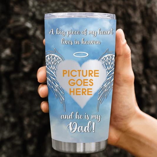 Custom Memorial Tumbler For Lost Loved Ones A Big Piece Of My Heart Lives In Heaven Dad Tumbler 20oz Blue M01