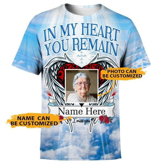 Personalized Memorial Shirt With Photo In My Heart You Remain For Mom, Dad , Grandpa, Son, Daughter Custom Memorial Gift M148