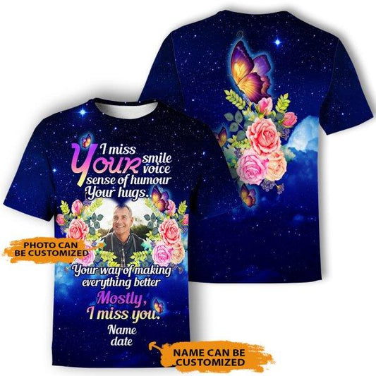 Personalized Memorial Shirt I Miss Your Smile I Miss You Butterfly For Mom, Dad, Grandpa, Son, Daughter Custom Memorial Gift M239