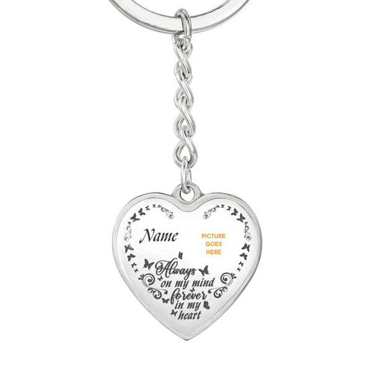 Custom Memorial Circle Keychain With Picture For Lost Loved Ones Always On My Mind Keychain White M57B