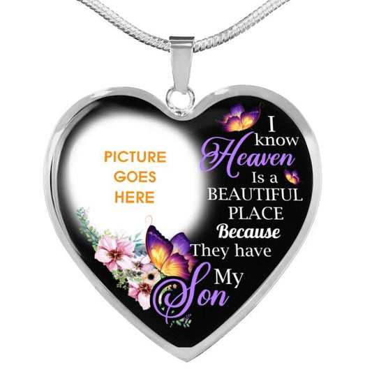 Personalized Memorial Heart Necklace Memorial I Know Heaven Is A Beautiful For Son Custom Memorial Gift M286
