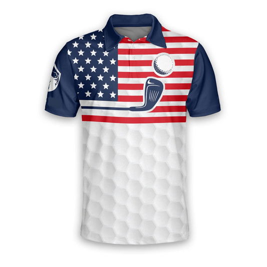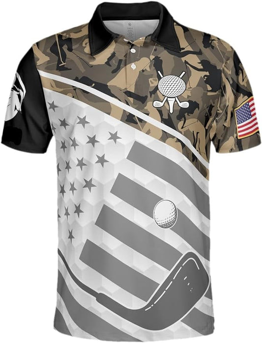 Golf Polo Shirt Golf Ball Club American Flag Camo Pattern Golf Shirts White Brown For Men