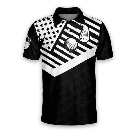 Golf Polo Shirt Skull Golf Slayer American Flag Pattern Golf Shirts Black White For Men