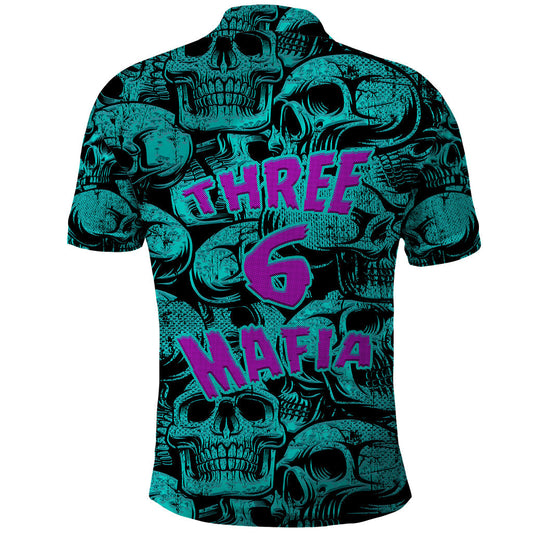 Skull Polo Shirt Three 6 Mafia Skull Pattern Boys Polo Shirts Blue
