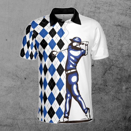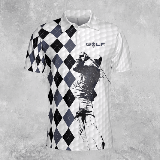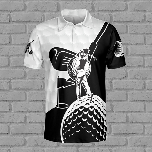 Golf Polo Shirt Golfer And Ball Pattern Golf Shirts Black White For Men