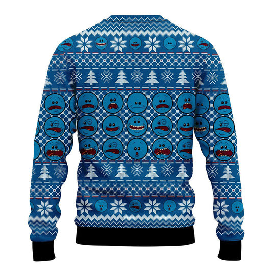 Unifinz Rick And Morty Christmas Sweater Meseeks Christmas Is Pain Blue Ugly Sweater