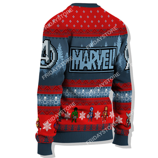 Unifinz MV Ugly Sweater MV Super Heroes With Christmas Tree Christmas Sweater Amazing MV Avengers Sweater