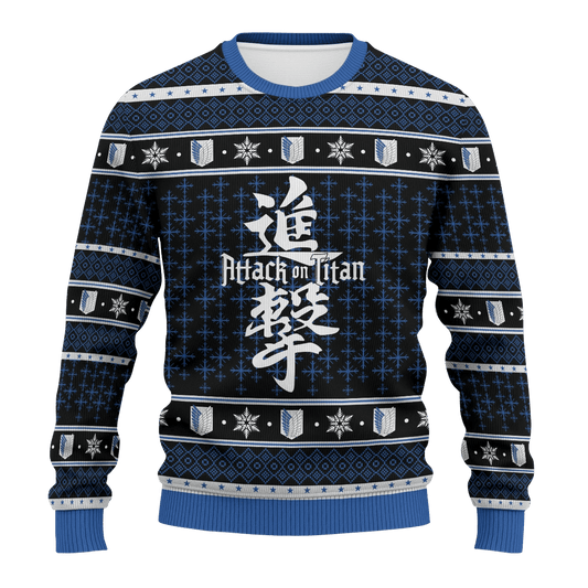 Attack On Titan Sweatshirt Attack On Titan Logo Pattern Sweatshirt Blue Unisex Adults