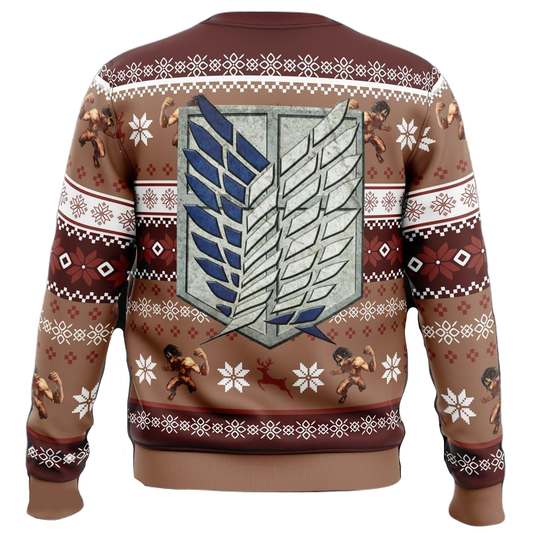 Attack On Titan Sweatshirt Attack On Titan Xmas Eren Yeager Sweatshirt Brown Unisex Adults