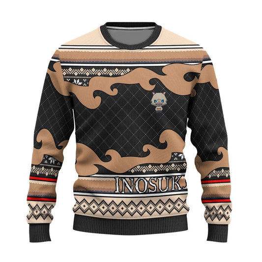 Demon Slayer Sweatshirt Chibi Inosuke Christmas Pattern Sweatshirt Brown Black Unisex Adults New Release