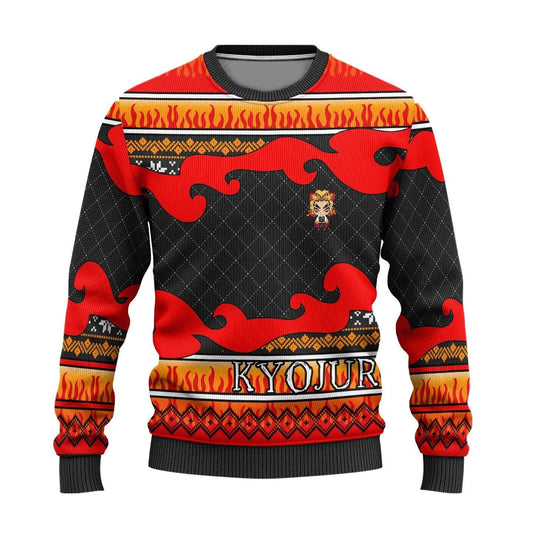 Demon Slayer Sweatshirt Chibi Kyojuro Christmas Pattern Sweatshirt Red Black Unisex Adults New Release