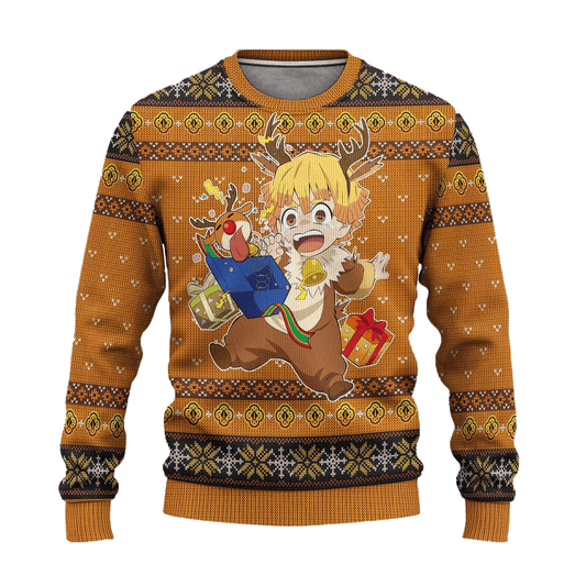 Demon Slayer Sweatshirt Cute Zenitsu In Reindeer Suit Sweatshirt Brown Unisex Adults New Release