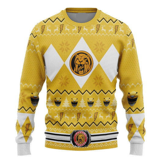 Power Rangers Sweatshirt Power Ranger Mighty Morphin Yellow Ranger Christmas Pattern Sweatshirt Unisex Adults