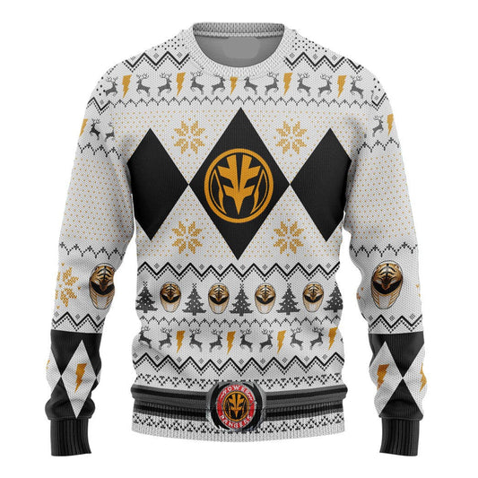 Power Rangers Sweatshirt Mighty Morphin White Ranger Helmet Pattern Christmas Sweatshirt Unisex Adults