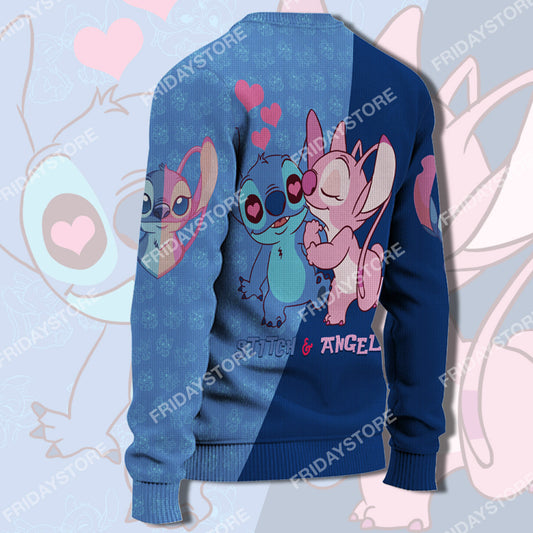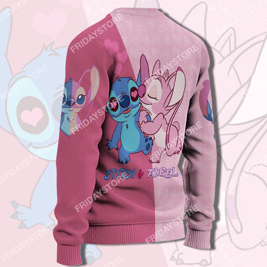 Unifinz LAS Sweater Her Stich Blowing Kiss Couple Ugly Sweater Cute DN Stitch Ugly Sweater