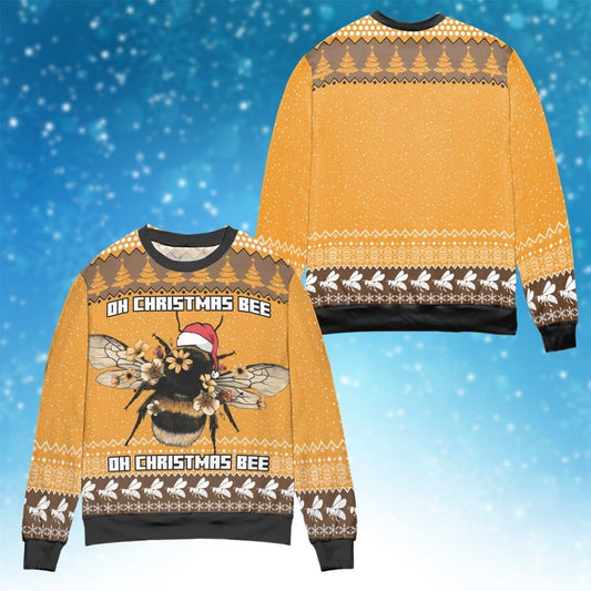 Unifinz Bee Ugly Christmas Sweater Oh Christmas Bee Brown Sweater