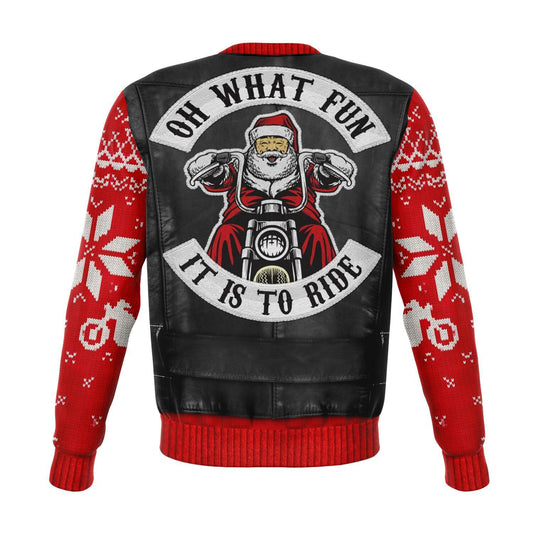 Unifinz Motorcycle Ugly Christmas Sweater Christmas Oh What Fun It Is To Ride Biker Costume Red Sweater
