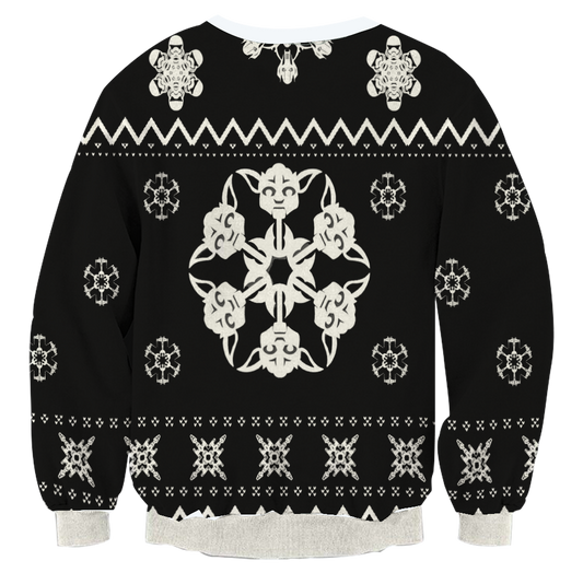 Unifinz SW Sweater Christmas Snowflakes Sith Grogu Black White Ugly Sweater