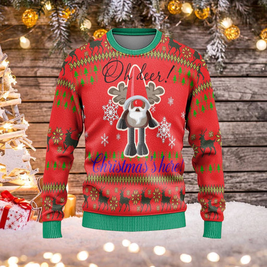 Unifinz Reindeer Sweater Oh Deer Christmas Is Here Red Ugly Sweater