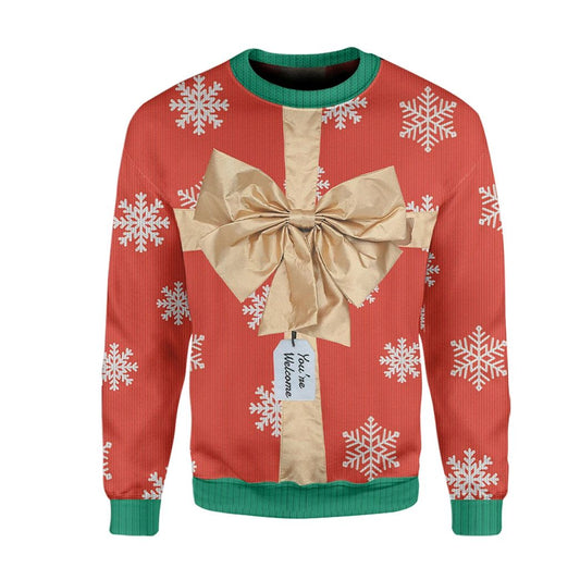 Unifinz Christmas Ugly Sweater Christmas Gift Box You're Welcome Costume Red Sweater