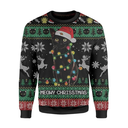 Unifinz Cat Ugly Sweater Meowy Christmas Black Cat Christmas Pattern Black Sweater