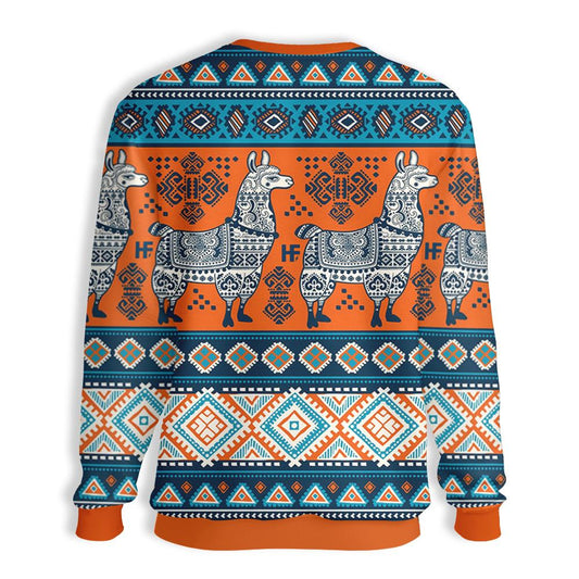Unifinz Llama Christmas Sweater Llama Yoga Pattern Orange Blue Ugly Sweater