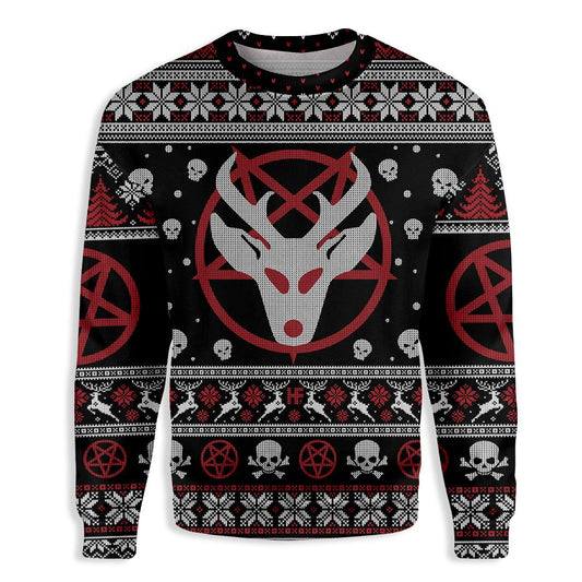 Unifinz Reindeer Ugly Christmas Sweater Pentagram Reindeer Witch Wicca Sweater