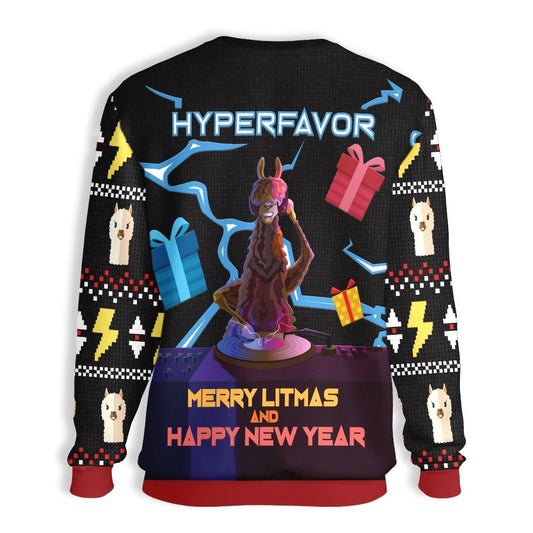 Unifinz Llama Christmas Sweater DJ Llama Merry Litmas And Happy New Year Ugly Sweater