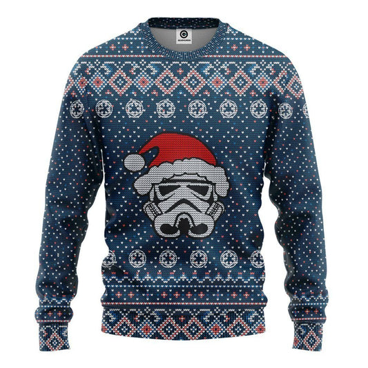 Unifinz SW Ugly Sweater SW Stormtrooper Christmas Hat Galactic Republic Pattern Blue Sweater