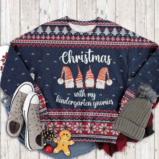 Unifinz Gnome Christmas Ugly Sweater Christmas With My Kindergarten Gnomies Sweater