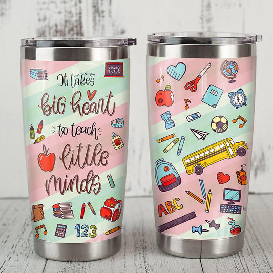 Unifinz Teacher Tumbler Cup 20 Oz It Takes Big Heart To Teach Little Minds School Items Pattern Tumbler 20 Oz